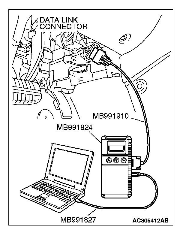 To prevent damage to scan tool MB991958, always turn the ignition switch to the "LOCK" (OFF) position before connecting or disconnecting scan tool MB991958.