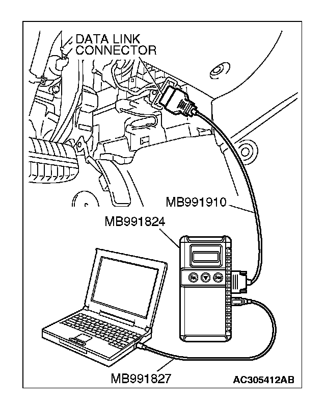 1) Connect scan tool MB991958 to the data link connector.