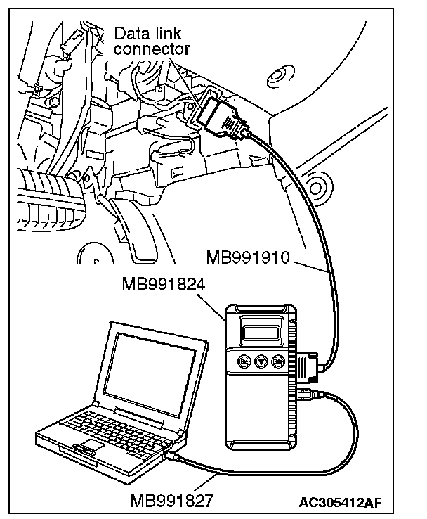 1) Connect scan tool MB991958 to the data link connector.