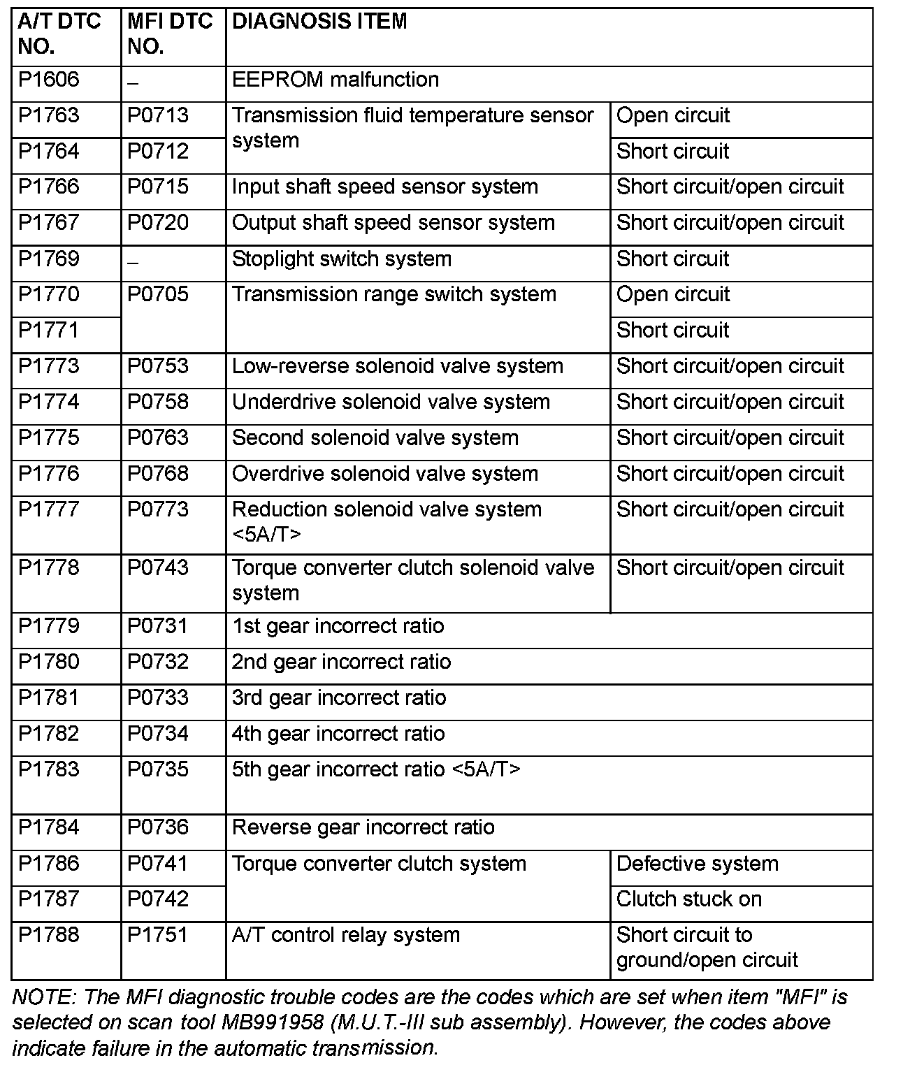 DIAGNOSTIC TROUBLE CODE CHARTCAUTION: