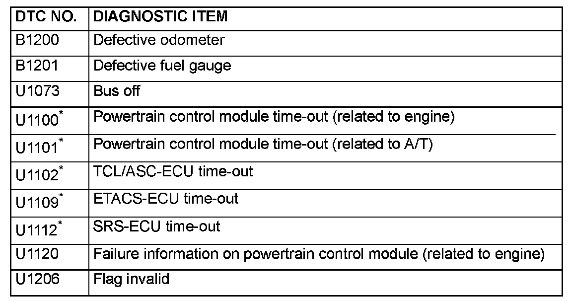 NOTE: *: When the DTC relating to the CAN communication error are output, make sure of the vehicle equipment. When the vehicle is not equipped with the system the combination meter communicates to, the DTC is always output. This is not abnormal.