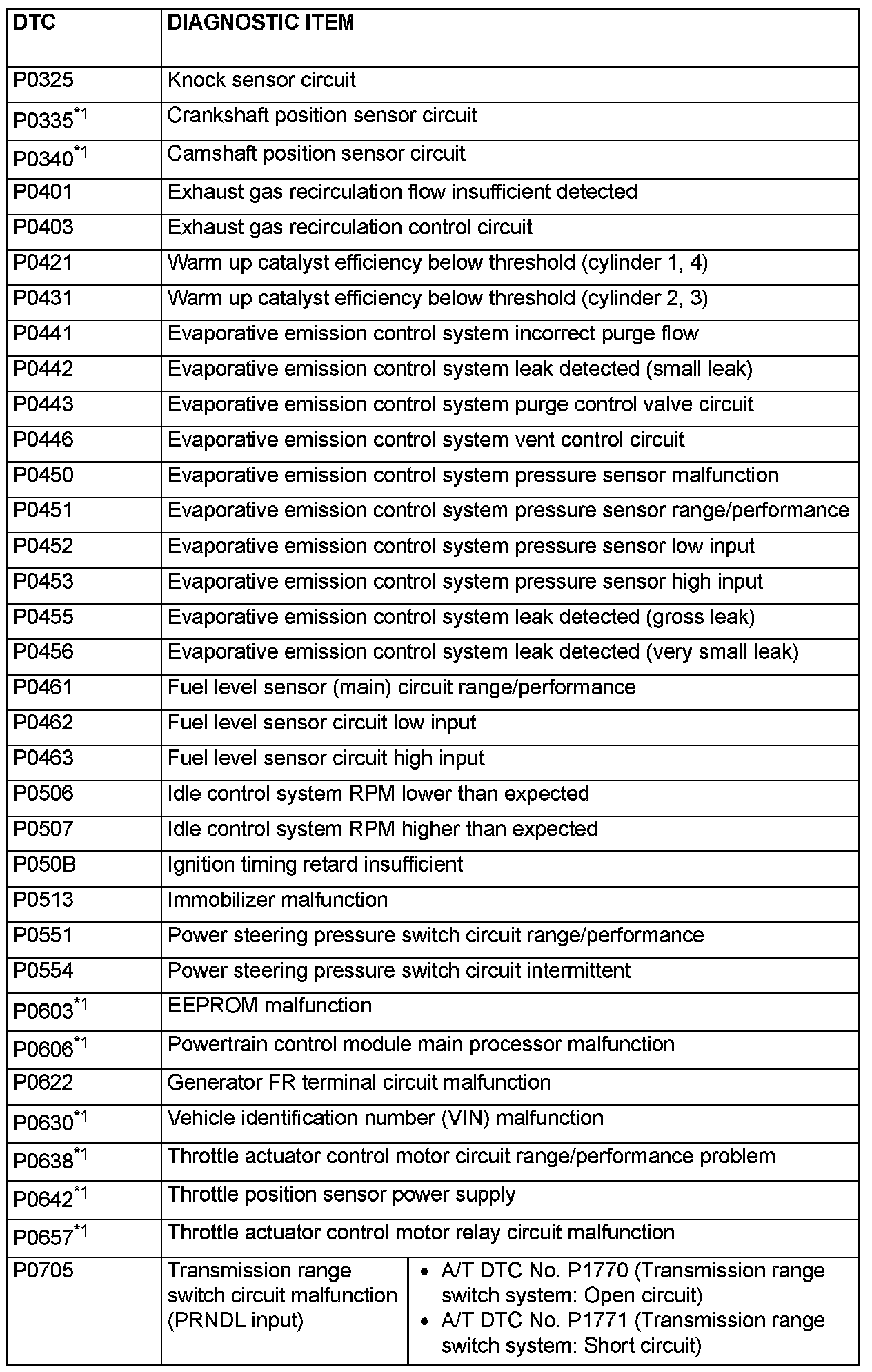 - After the PCM detects a malfunction, a diagnostic trouble code is recorded the next time the engine is started and the same malfunction is re-detected. However, for items marked with a "*1 , the diagnostic trouble code is recorded on the first detection of the malfunction.