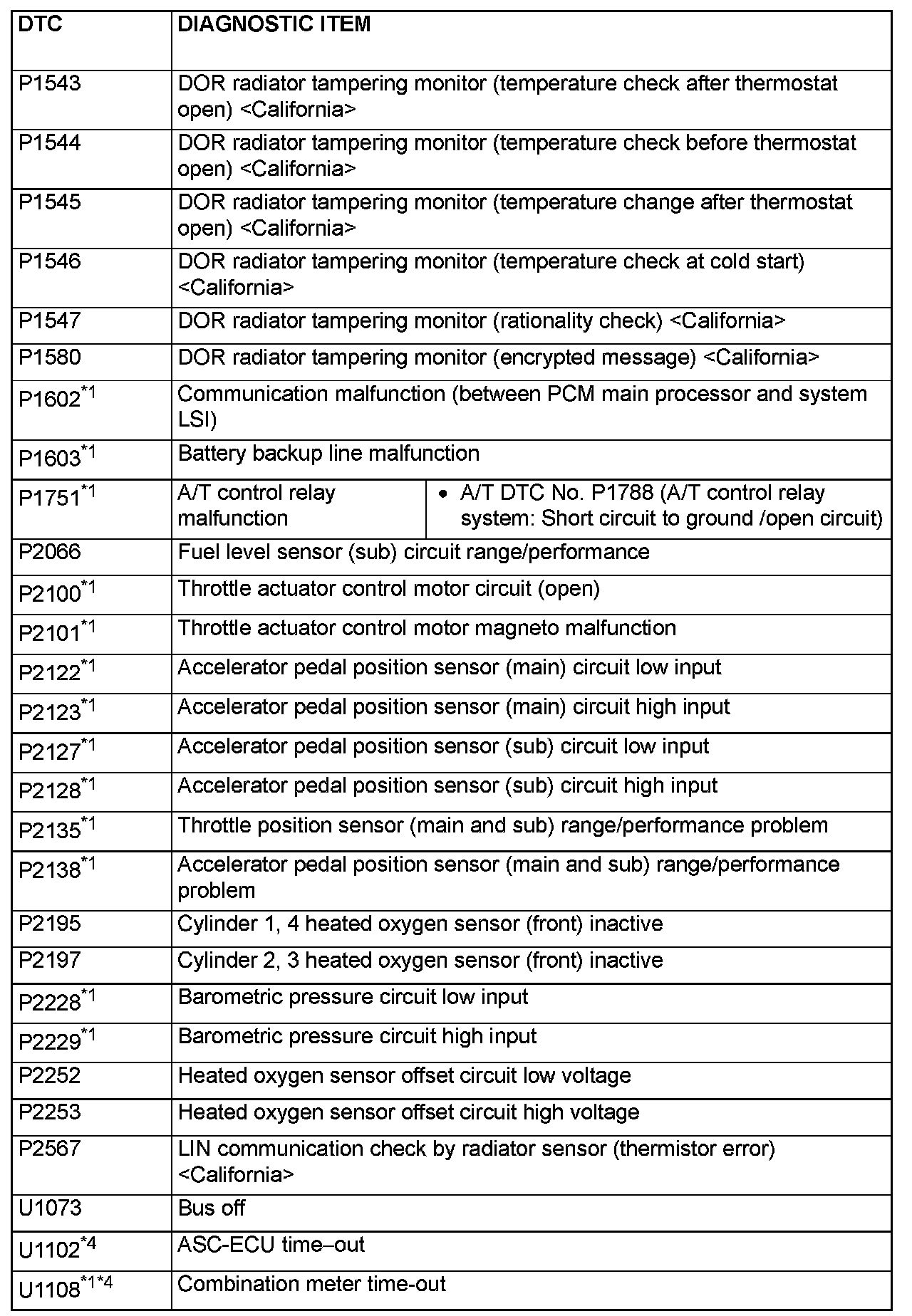 - *4:When the diagnosis codes relating to the CAN communication error are output, make sure of the vehicle equipment. When the vehicle is not equipped with the system the PCM communications to, the diagnosis code is always output. This is not abnormal