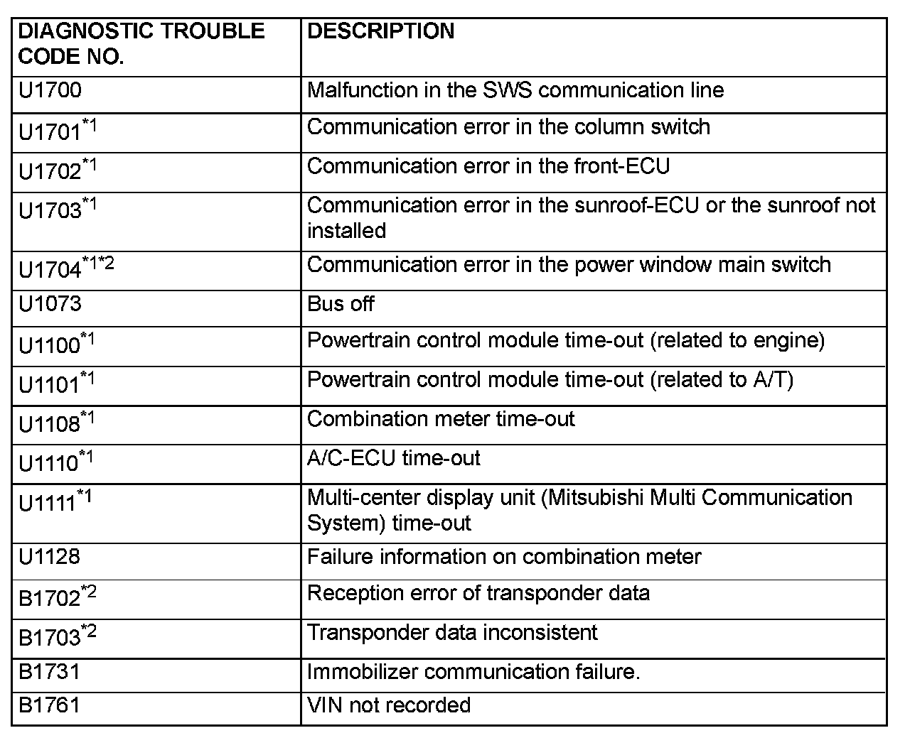 - *1: When the DTC relating to the CAN communication error are output, make sure of the vehicle equipment. When the vehicle is not equipped with the system the ETACS-ECU communicates to, the DTC is always output. This is not abnormal.