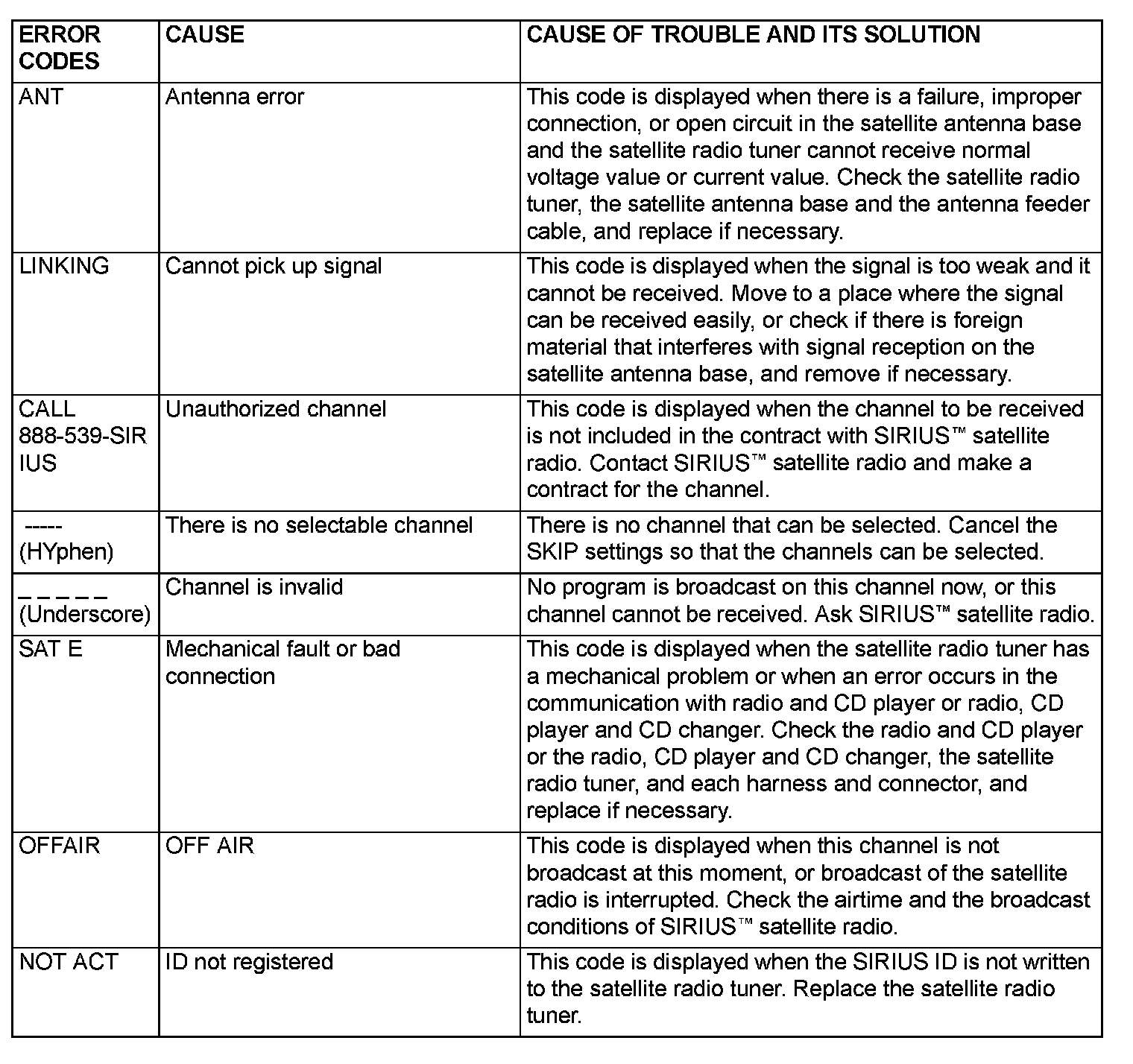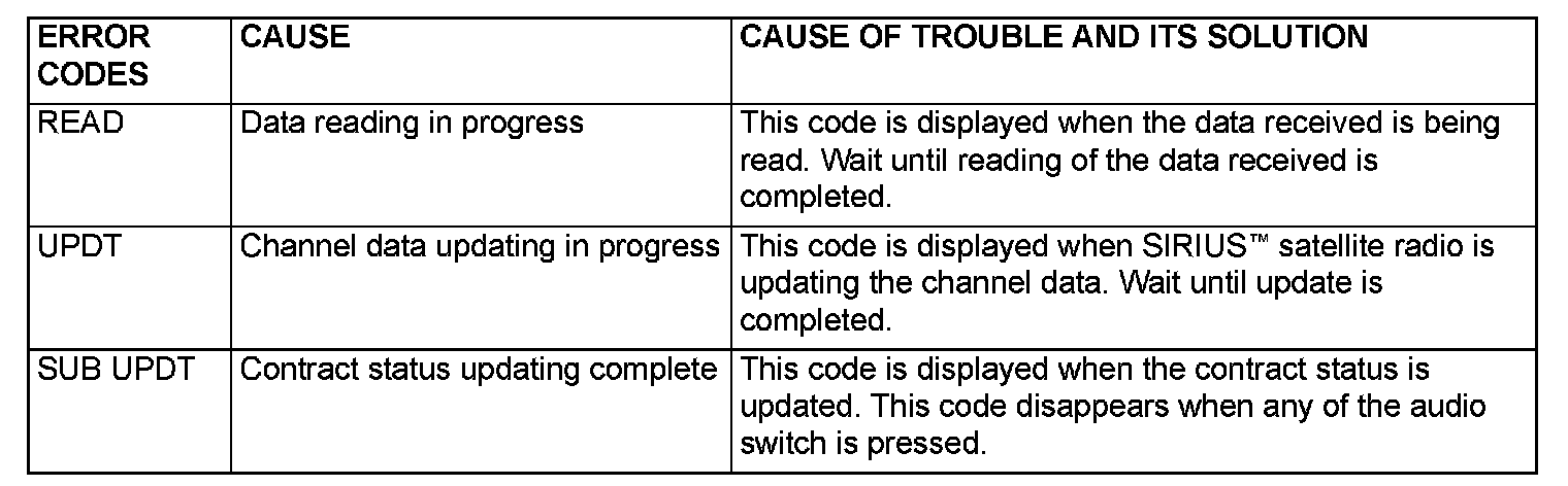 ERROR CODE (SIRIUS satellite radio) [VEHICLES WITH MULTI-CENTER DISPLAY]