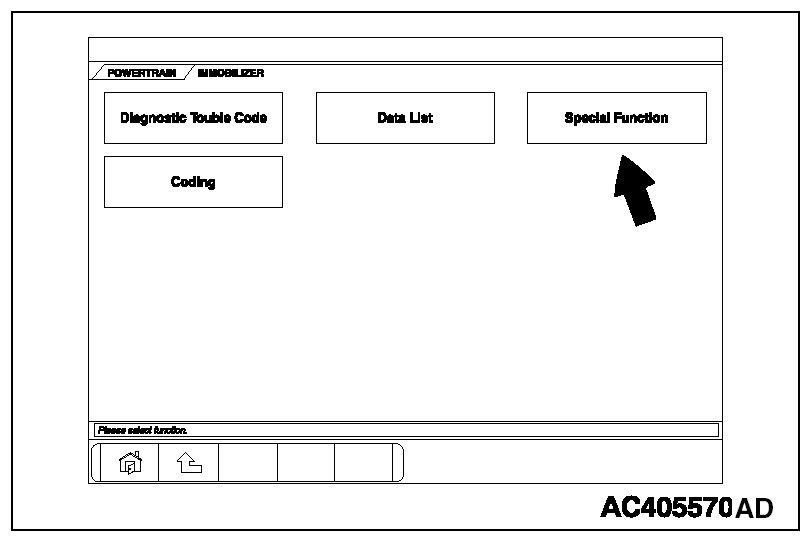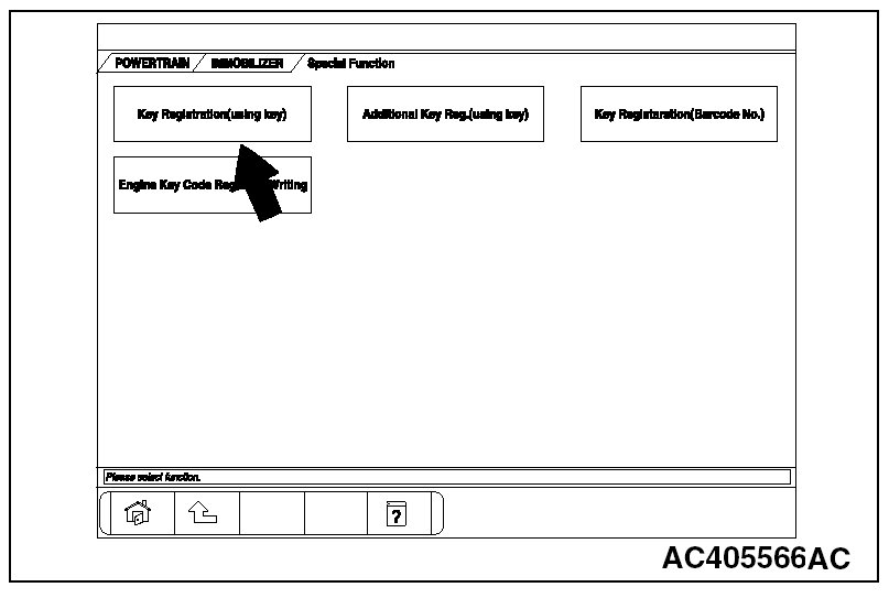 Encrypted Code Registration Using Ignition Key [Registration Using Scan Tool MB991958 (M.U.T.-III Sub Assembly)]