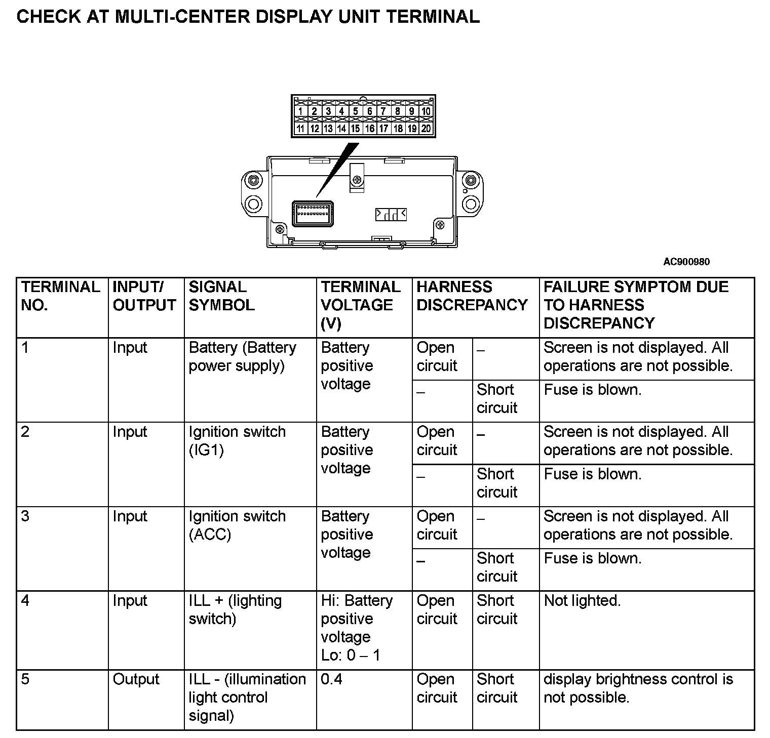 Check At Multi-Center Display Unit Terminal (Part 1):