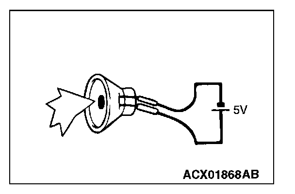 2. Check that the front door speaker (LH) generates noise when a five-volt voltage is applied on the front door speaker (LH) terminal.
