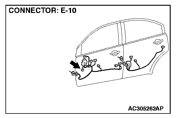 STEP 2. Check front door speaker (LH) connector E-10 and multi-center display connector C-33 for loose, corroded or damaged terminals, or terminals pushed back in the connector.