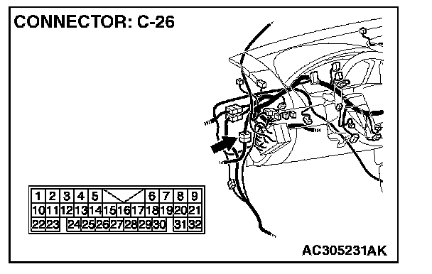 NOTE: Also check intermediate connector C-26 for loose, corroded, or damaged terminals, or terminals pushed back in the connector. If intermediate connector C-26 is damaged, repair or replace the connector.