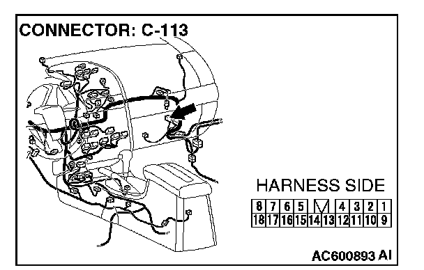 STEP 4. Check audio amplifier connector C-113 for loose, corroded or damaged terminals, or terminals pushed back in the connector.