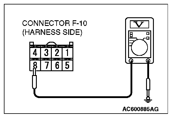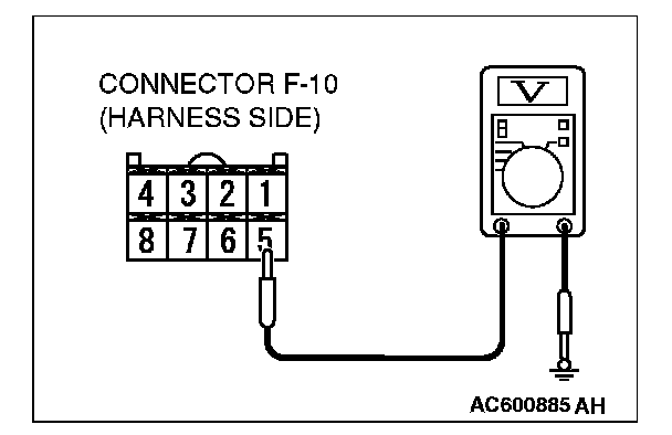 1. Disconnect navigation unit connector F-10 and measure the voltage available at the wiring harness side of the connector.