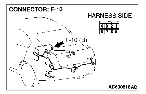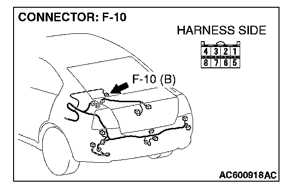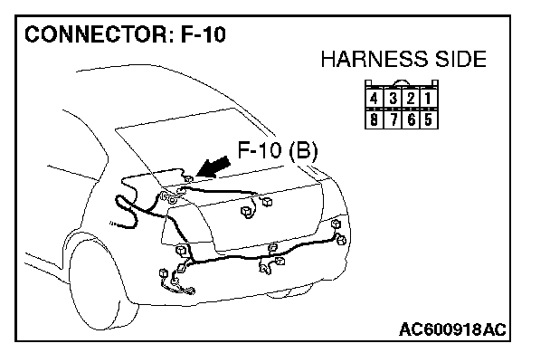 STEP 5. Check the wiring harness between navigation unit connector F-10 (terminal 8) and the battery.