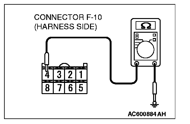 STEP 8. Check the ground circuit to the navigation unit. Measure the resistance at navigation unit connector F-10.