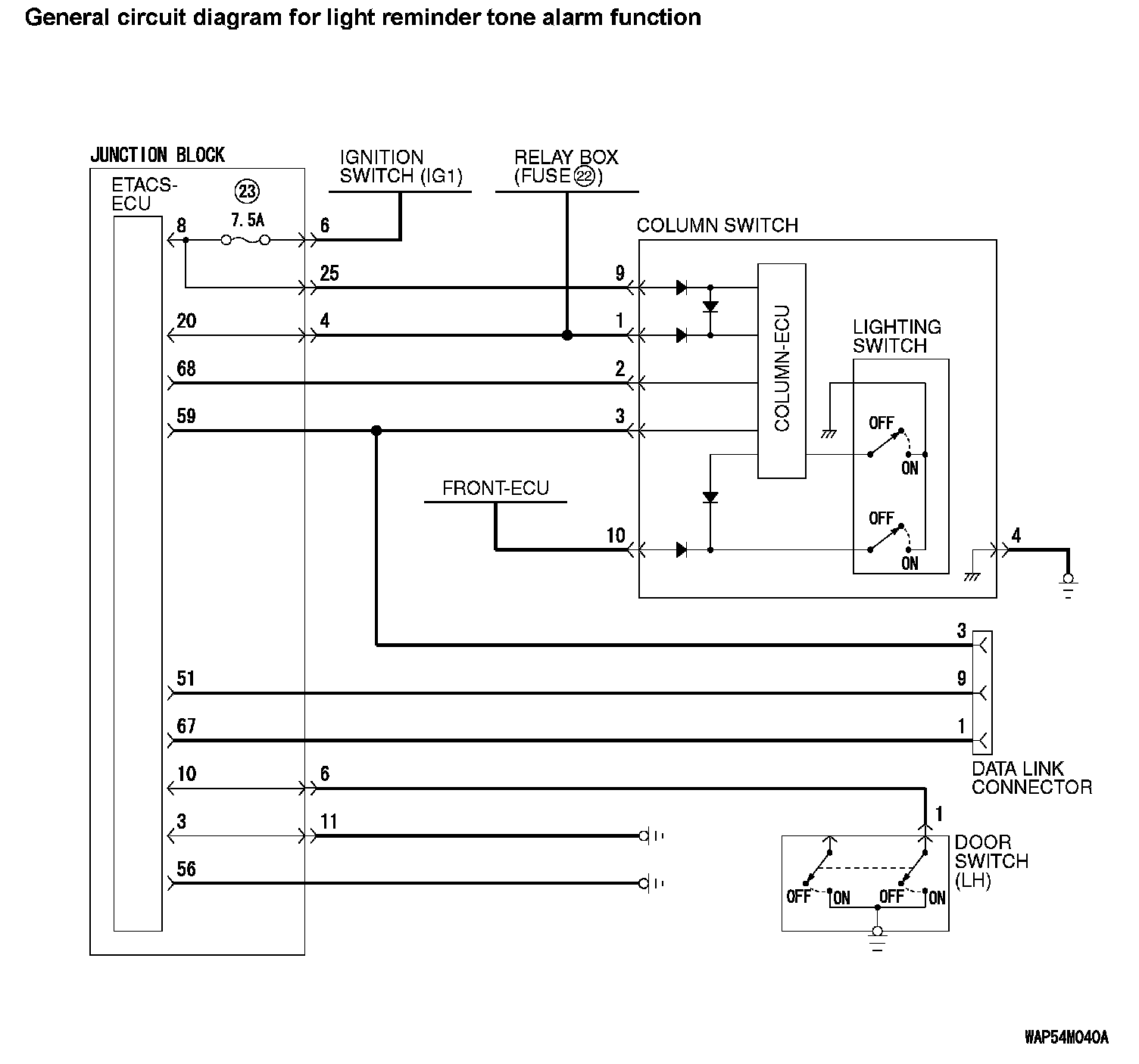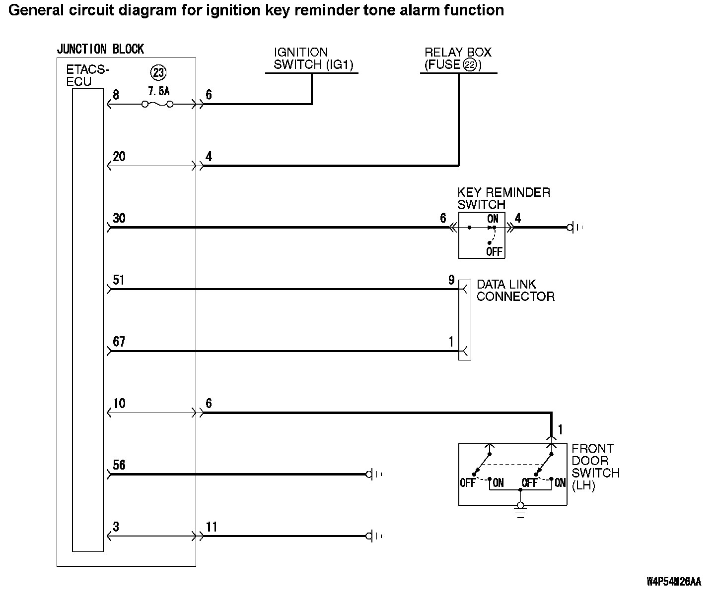General circuit diagram for ignition key reminder tone alarm function