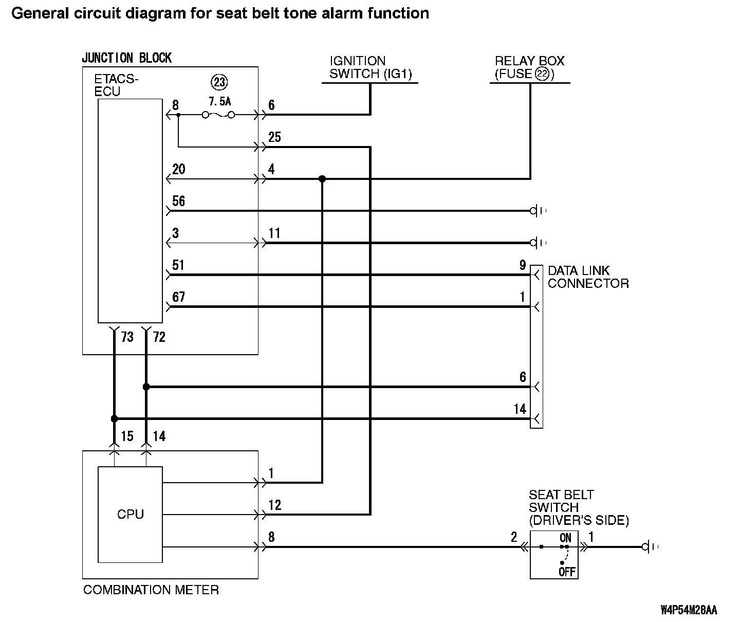 General Circuit Diagram For Seat Belt Tone Alarm Function: