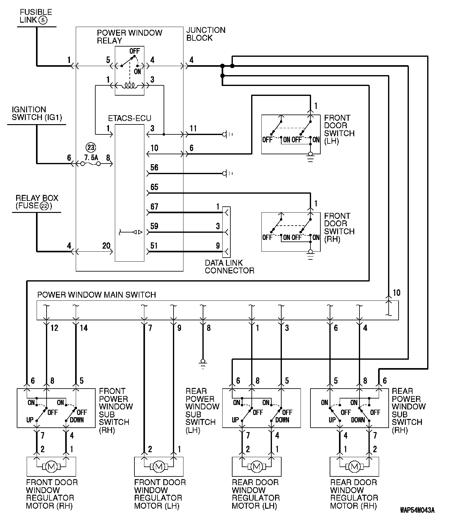 GENERAL CIRCUIT DIAGRAM FOR THE POWER WINDOWS