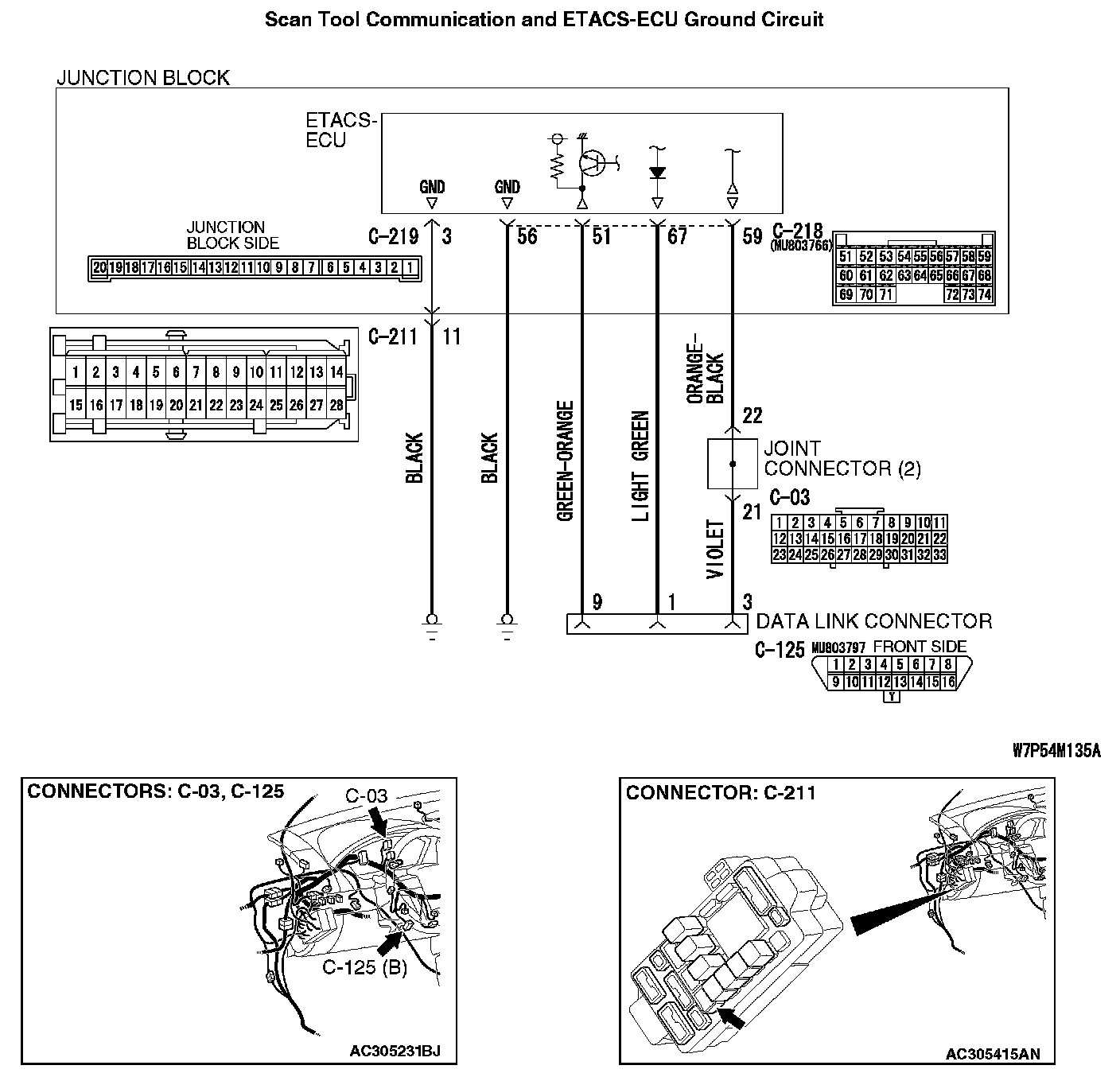 STEP 7. Check the wiring harness between ETACS-ECU connector C-218 (terminals 51, 59 and 67) and data link connector C-125 (terminals 9, 3 and 1).