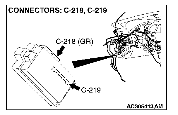 STEP 3. Check ETACS-ECU connectors C-218 and C-219 for loose, corroded or damaged terminals, or terminals pushed back in the connector.