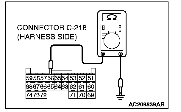 2. Measure the resistance value between ETACS-ECU connector C-218 terminal 56 and ground.