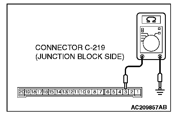Measure the resistance value between ETACS-ECU connector C-219 terminal 3 and ground.