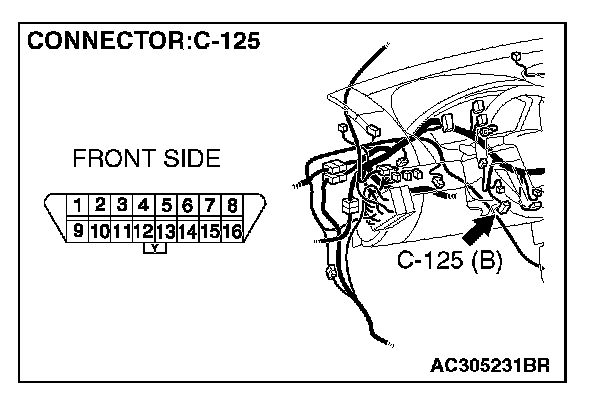 STEP 6. Check data link connector C-125 for loose, corroded or damaged terminals, or terminals pushed back in the connector.