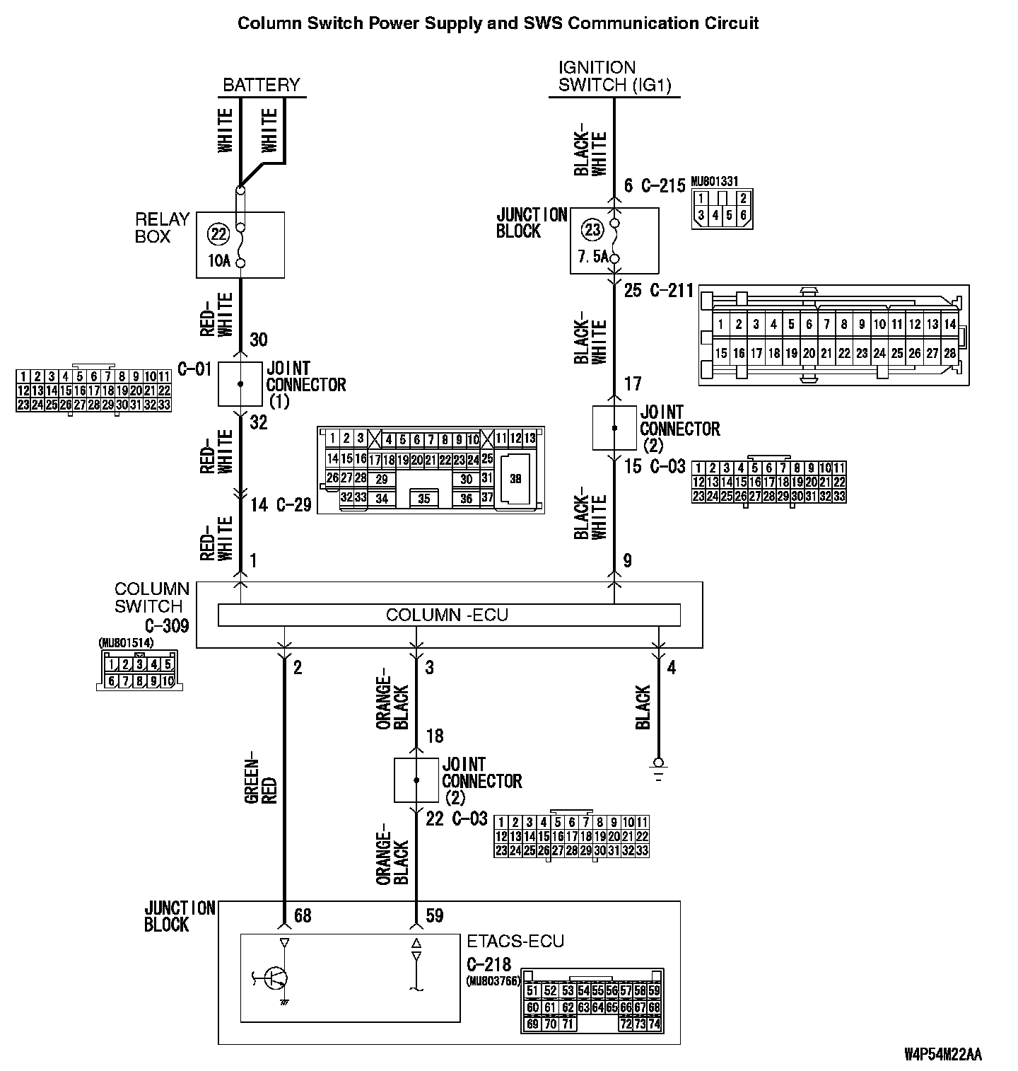- The power supply to the column switch is provided by the battery and the ignition switch (IG1).