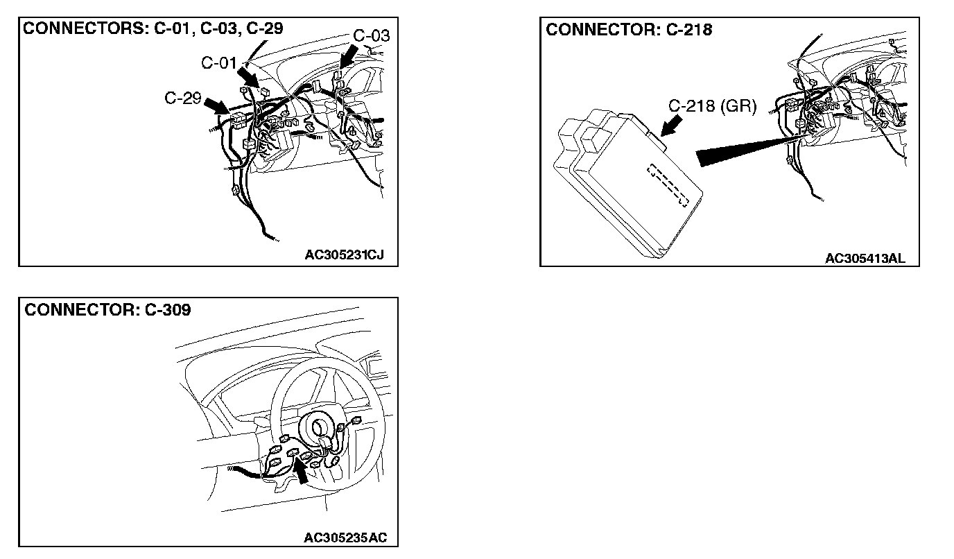 STEP 2. Check column switch connector C-309 for loose, corroded or damaged terminals, or terminals pushed back in the connector.