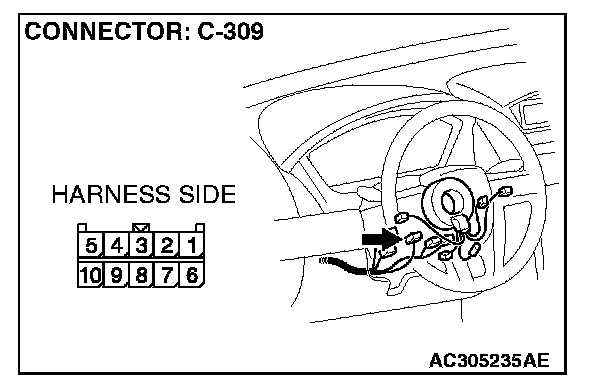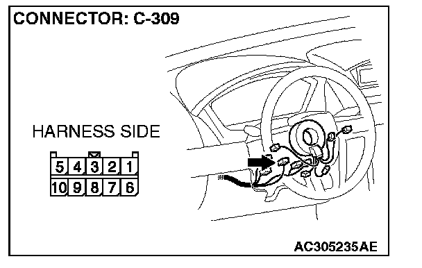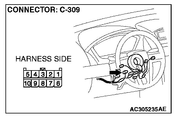 1. Disconnect column switch connector C-309 and measure the resistance available at the wiring harness side of the connector.