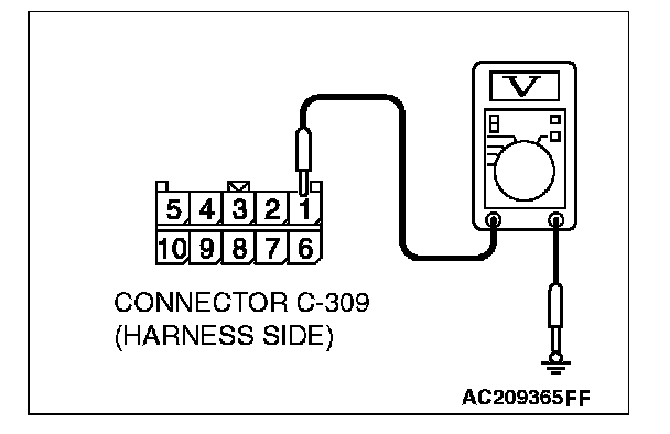 1. Disconnect column switch connector C-309 and measure the voltage available at the wiring harness side of the connector.