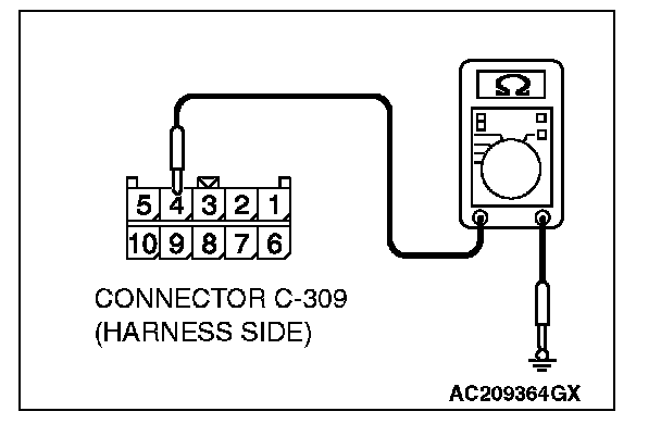 STEP 5. Check the ground circuit to the column switch. Measure the resistance at column switch connector C-309.