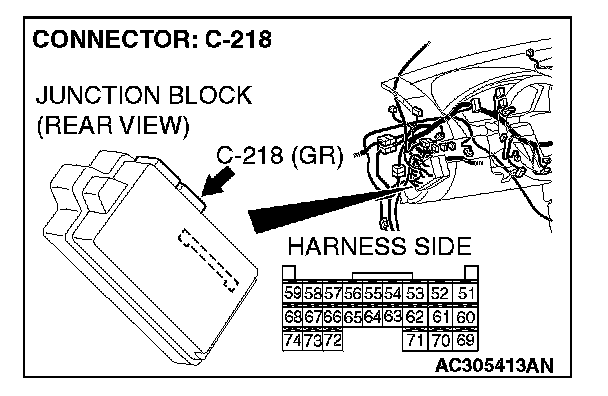 STEP 7. Check ETACS-ECU connector C-218 for loose, corroded or damaged terminals, or terminals pushed back in the connector.