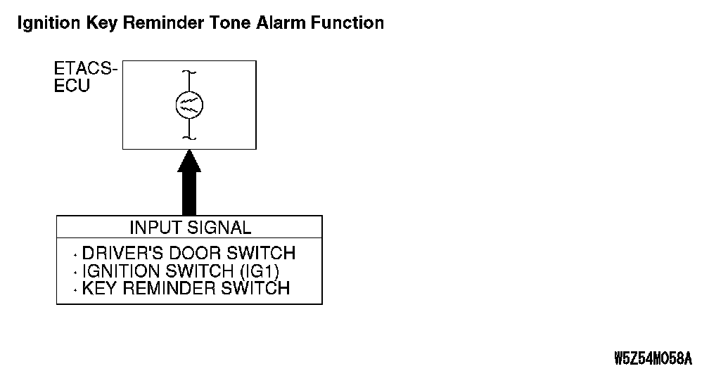 The ETACS-ECU operates the ignition key reminder tone alarm function, based on input signals from the following switches: