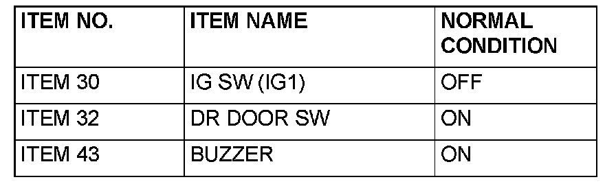 Q: Does scan tool MB991958 display the items "IG SW (IG1)", "DR DOOR SW" and "BUZZER" as normal condition?