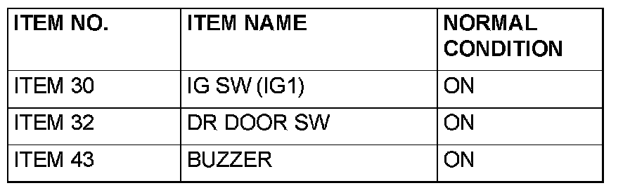 INSPECTION PROCEDURE B-4: Tone Alarm: Door ajar Warning Buzzer Function does not Work Normally.
