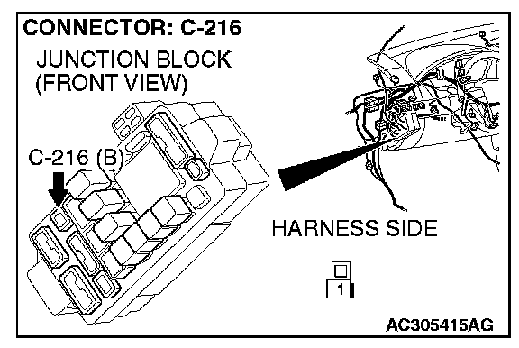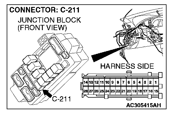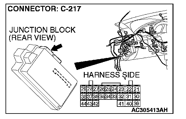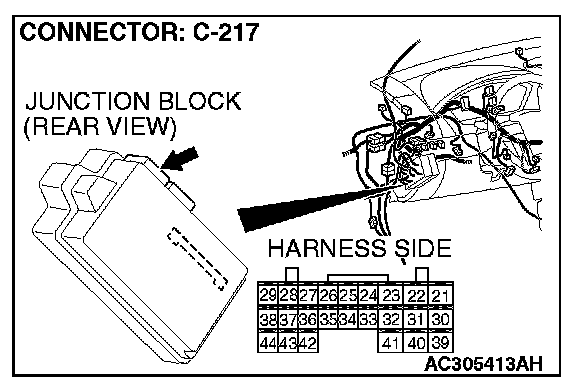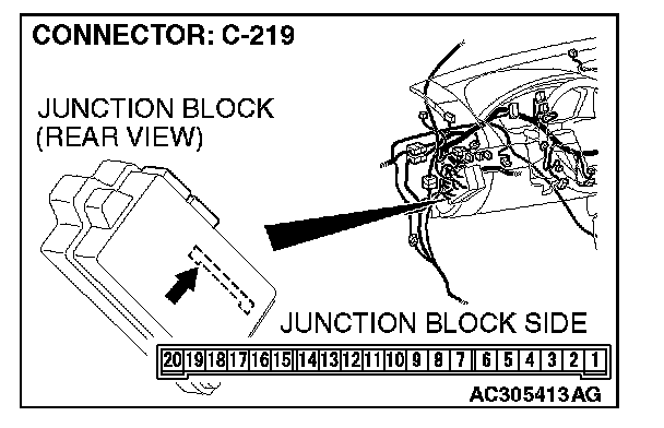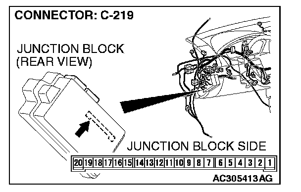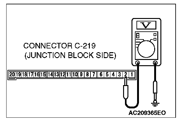 1. Disconnect ETACS-ECU connector C-219 and measure the voltage available at the junction block side of the connector.