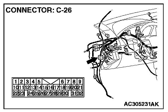 NOTE: Also check intermediate connector C-26 for loose, corroded, or damaged terminals, or terminals pushed back in the connector. If intermediate connector C-26 is damaged, repair or replace the damaged component(s).