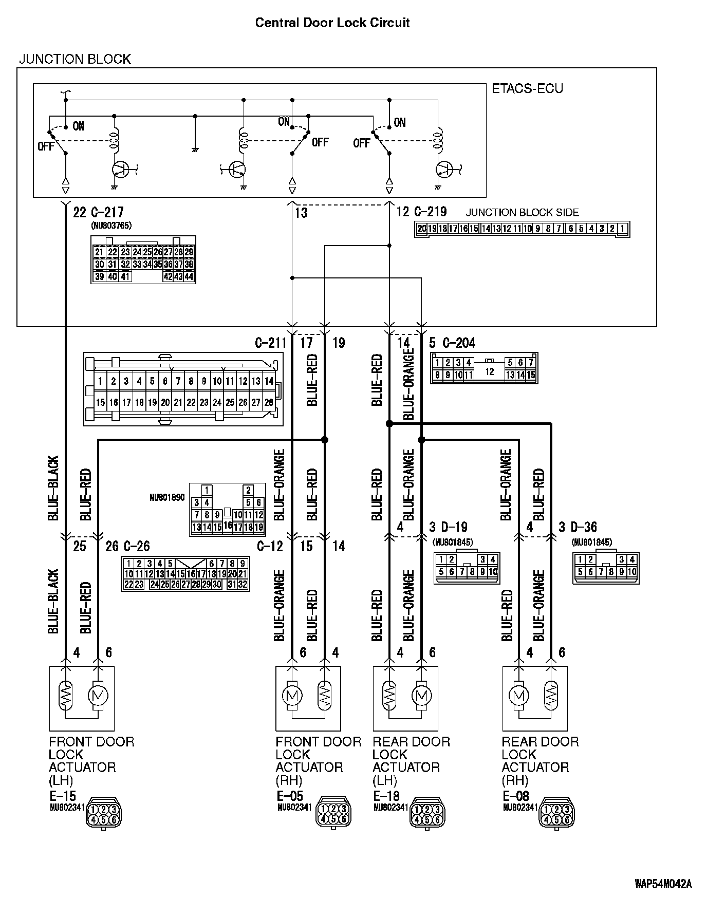 - The ETACS-ECU locks or unlocks all the doors (except liftgate and glass hatch lock) by operating the central door lock relay (incorporated in the ECU) in response to input signals.