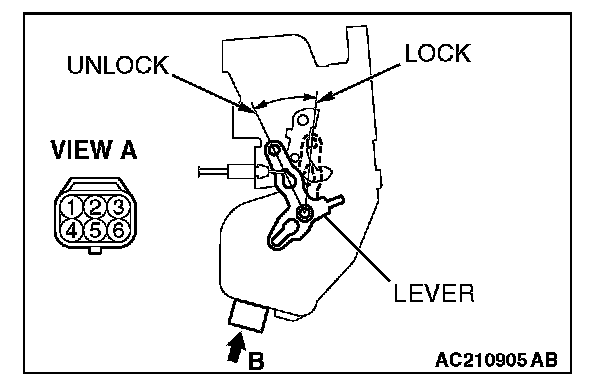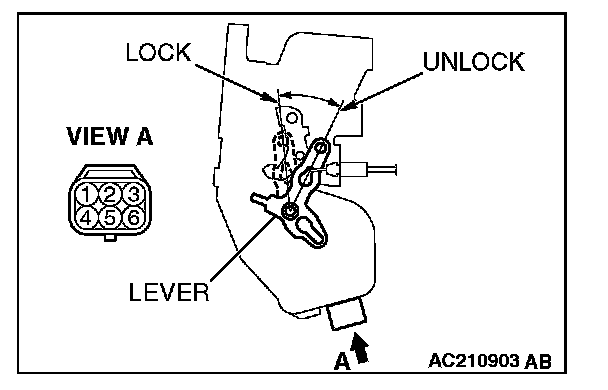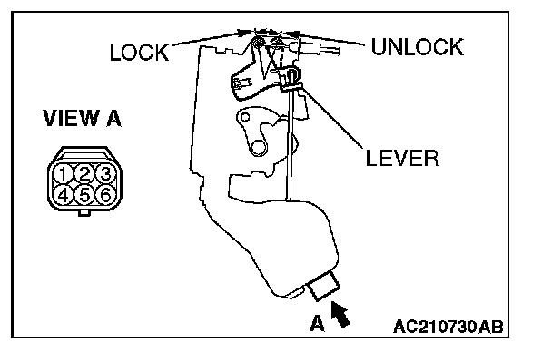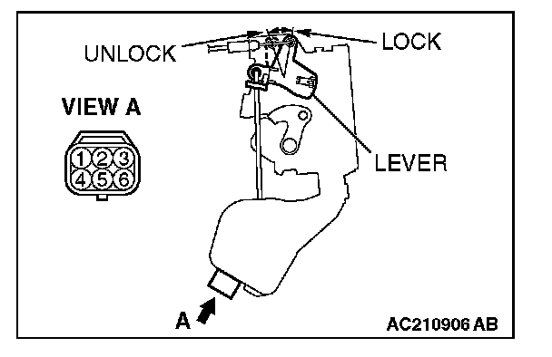 Remove the front door lock actuator (LH). The illustration shows when the door lock actuator is viewed from inside the door.