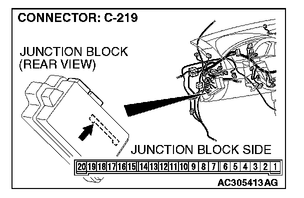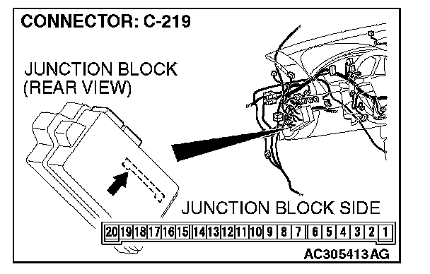 STEP 9. Check ETACS-ECU connector C-219 for loose, corroded or damaged terminals, or terminals pushed back in the connector.