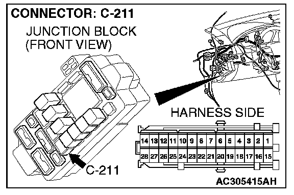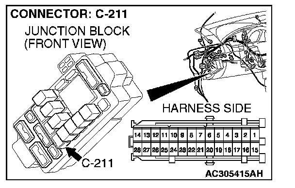 NOTE: Also check intermediate connector C-12 and junction block connector C-211 for loose, corroded, or damaged terminals, or terminals pushed back in the connector. If intermediate connector C-12 or junction block connector C-211 is damaged, repair or replace the damaged component(s).