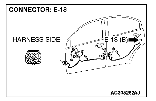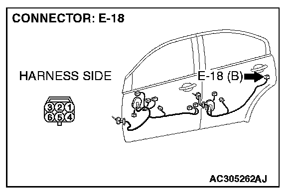 STEP 11. Check rear door lock actuator (LH) connector E-18 for loose, corroded or damaged terminals, or terminals pushed back in the connector.