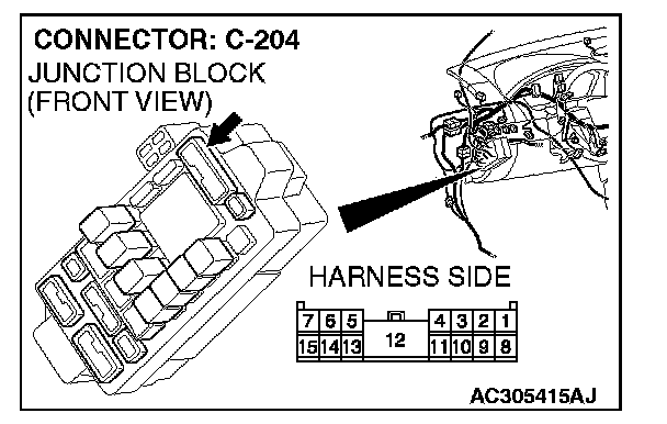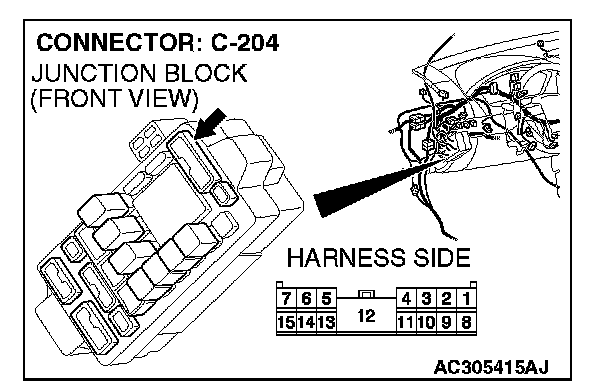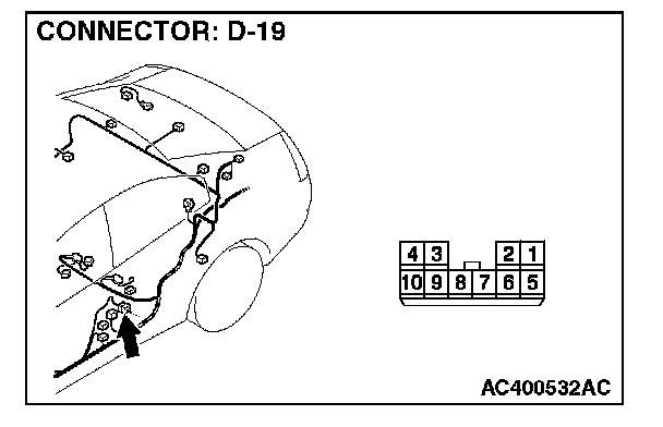 NOTE: Also check intermediate connector D-19 and junction block connector C-204 for loose, corroded, or damaged terminals, or terminals pushed back in the connector. If intermediate connector D-19 or junction block connector C-204 is damaged, repair or replace the damaged component(s).