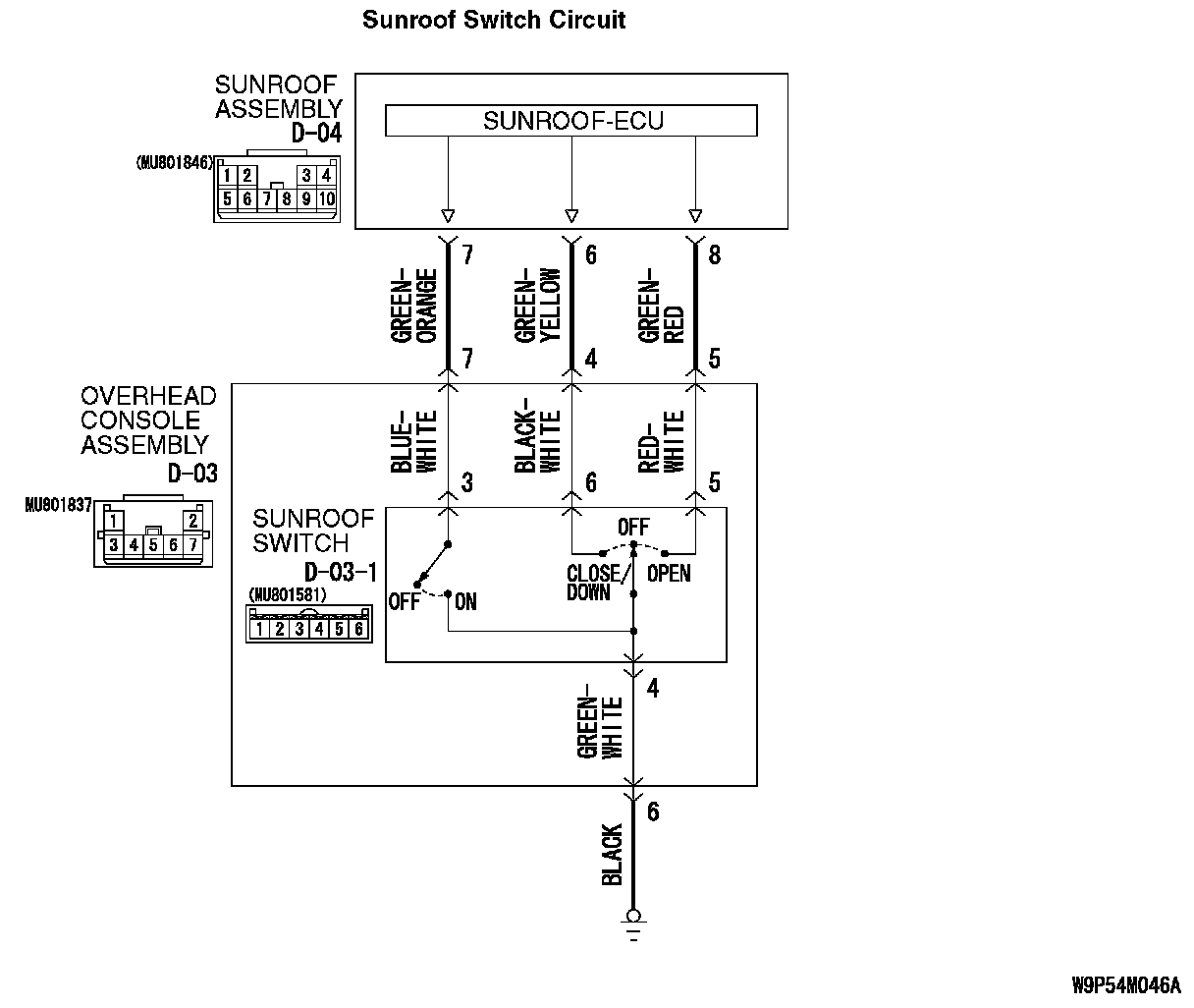 INSPECTION PROCEDURE F-2: Sunroof: One of the sunroof switch positions is defective.Sunroof Switch Circuit: