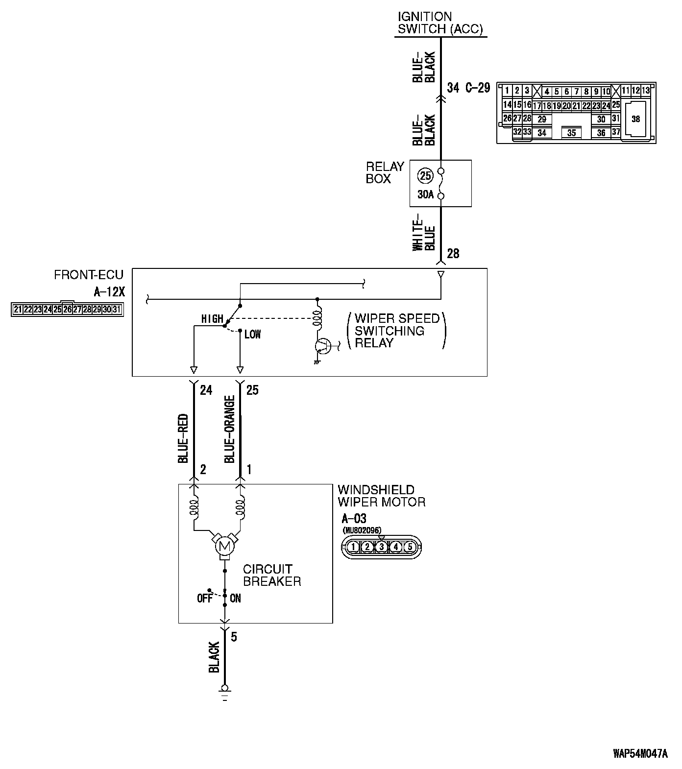 1. Disconnect windshield wiper motor connector A-03.