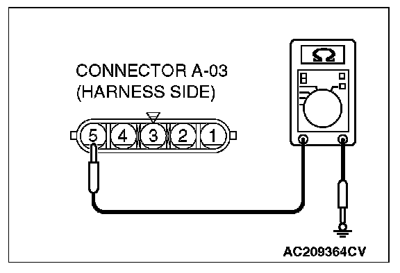 STEP 6. Check the wiring harness between windshield wiper motor connector A-03 (terminal 5) and ground.