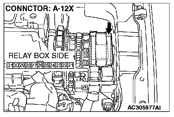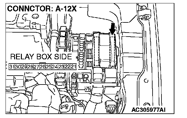 STEP 7. Check front-ECU connector A-12X for loose, corroded or damaged terminals, or terminals pushed back in the connector.