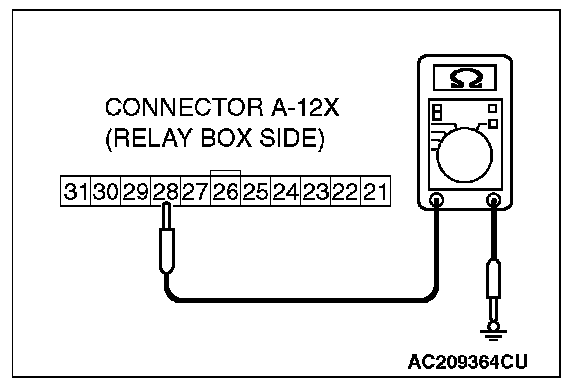 1. Disconnect front-ECU connector A-12X and measure the resistance available at the relay box side of the connector.