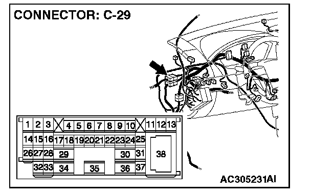 NOTE: Also check intermediate connector C-29 for loose, corroded, or damaged terminals, or terminals pushed back in the connector. If intermediate connector C-29 is damaged, repair or replace the damaged component(s).
