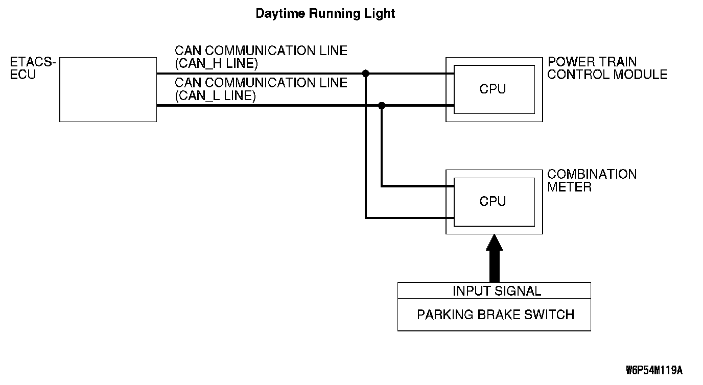 If the daytime running light function does not work, connector(s), wiring harness in the CAN bus lines, the powertrain control module, the combination meter, the ETACS-ECU or the input signal circuit may be defective.